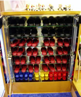 スリッパは滅菌ボックスに収納、1日1回のアルコール滅菌と毎回の殺菌消臭スプレー処理を行っております。